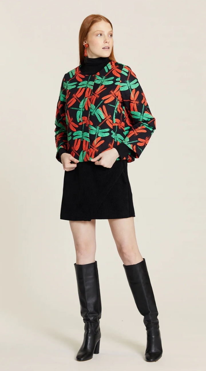 Chaqueta acolchada libélulas con cuello ovalo, manga funel larga.