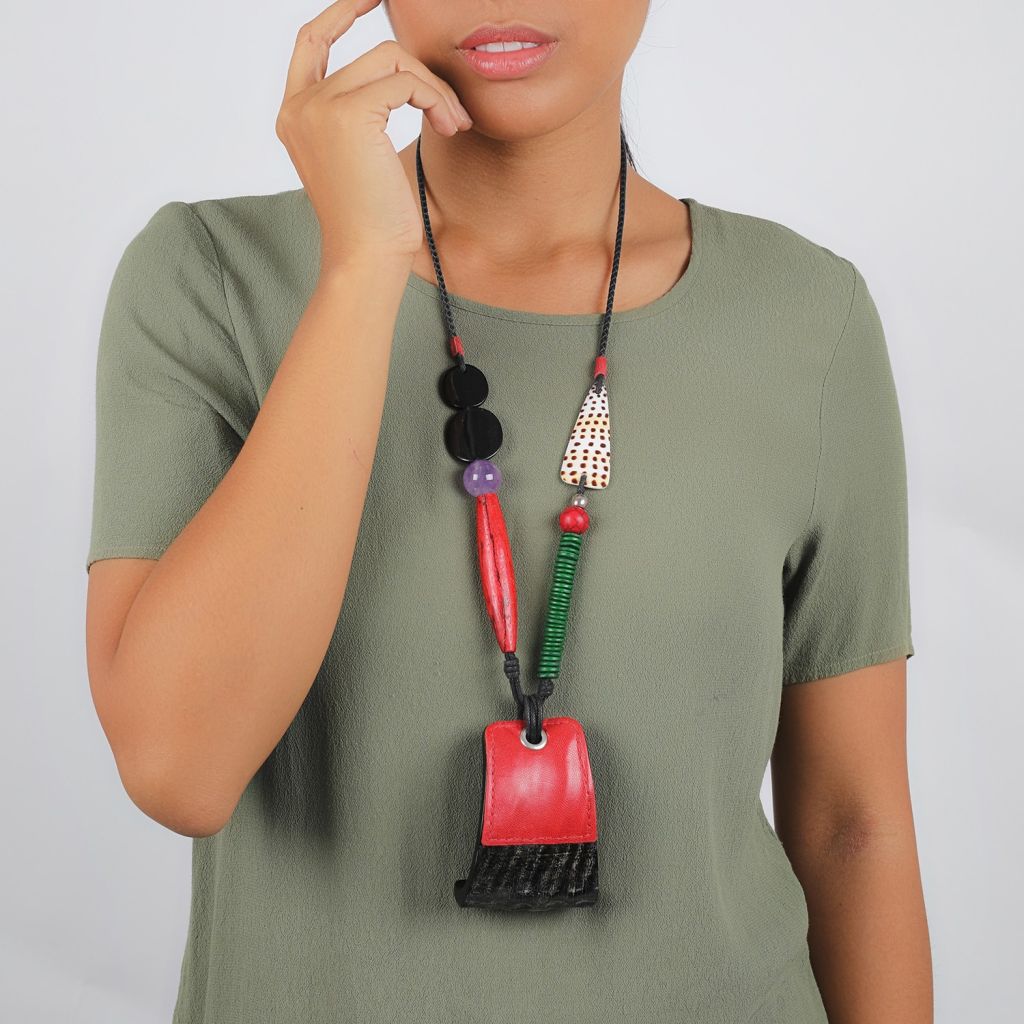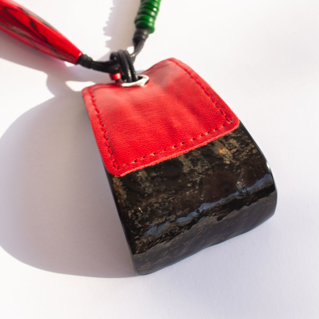 | MATERIALES | Coco, Lettered Cone (concha), Madera De Tamarin, Cuerno, Cuero, Amatista, Howlite |