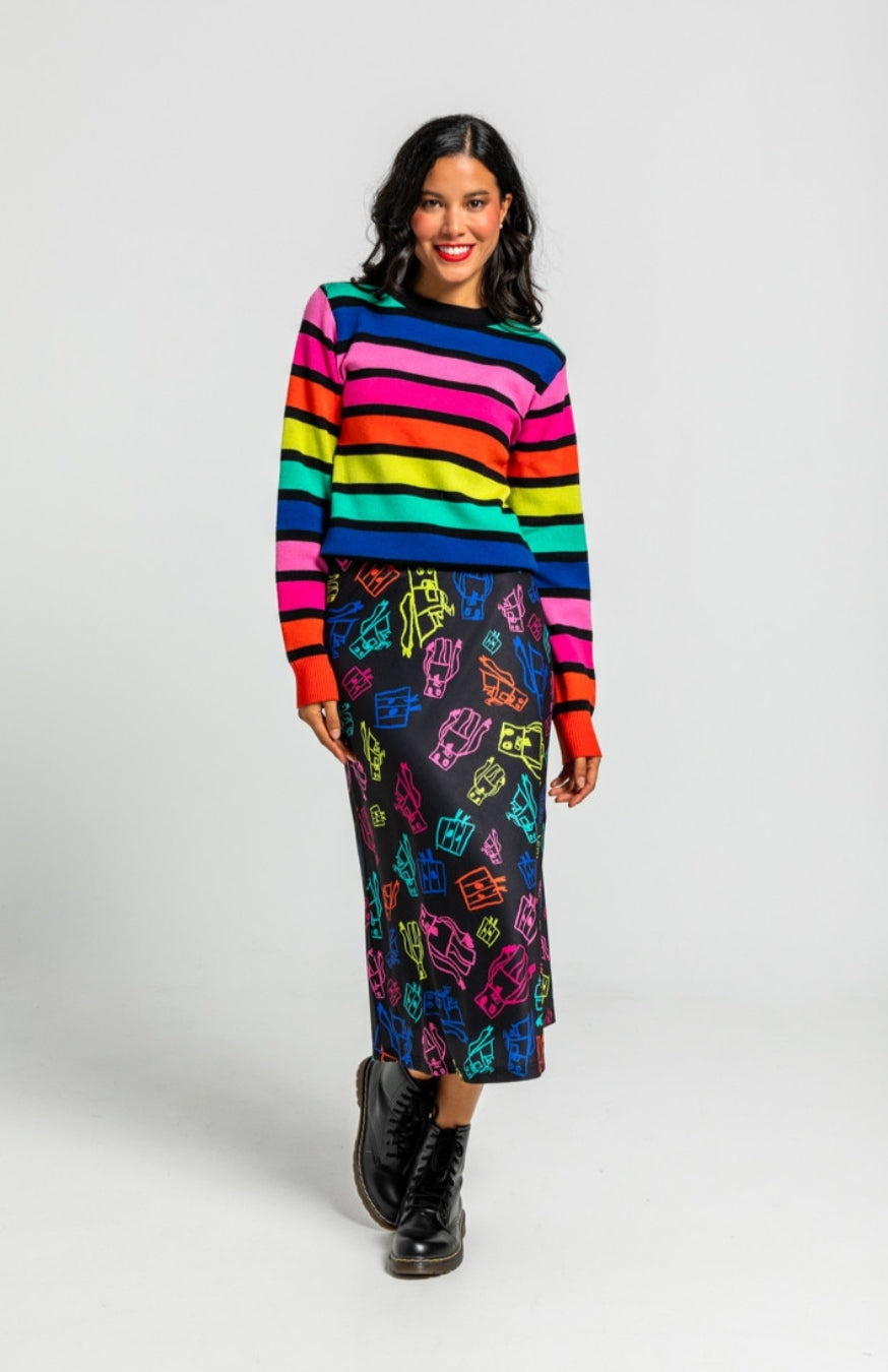 Falda de tul con estampado de Robots el cual ha sido obra de uno de los maravillosos niños de un centro de acogida de Granada al que irán destinados parte de los beneficios de esta colección.