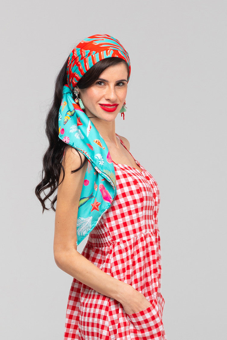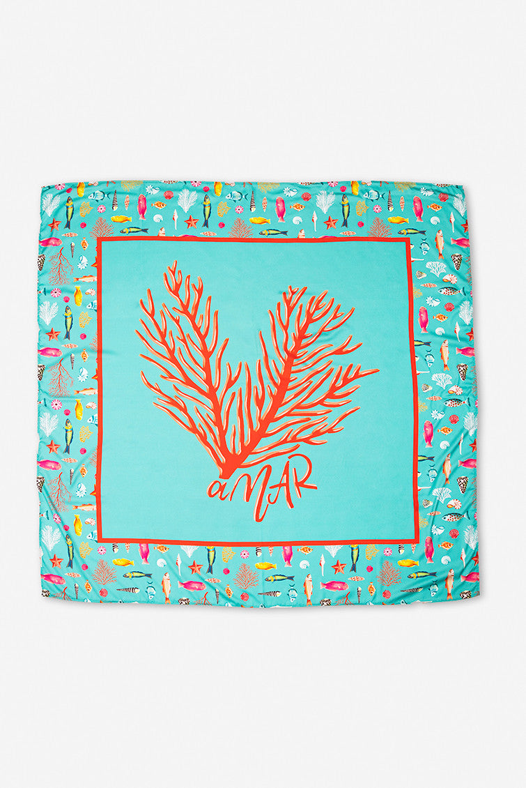 Pañuelo cuadrado de tejido fluido y estampado de la colección Fish.